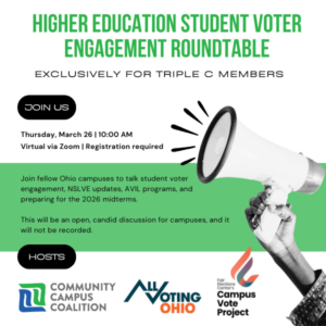 Join us for the Ohio Campus Voter Engagement Roundtable on Thursday, March 26 at 10:00 AM.